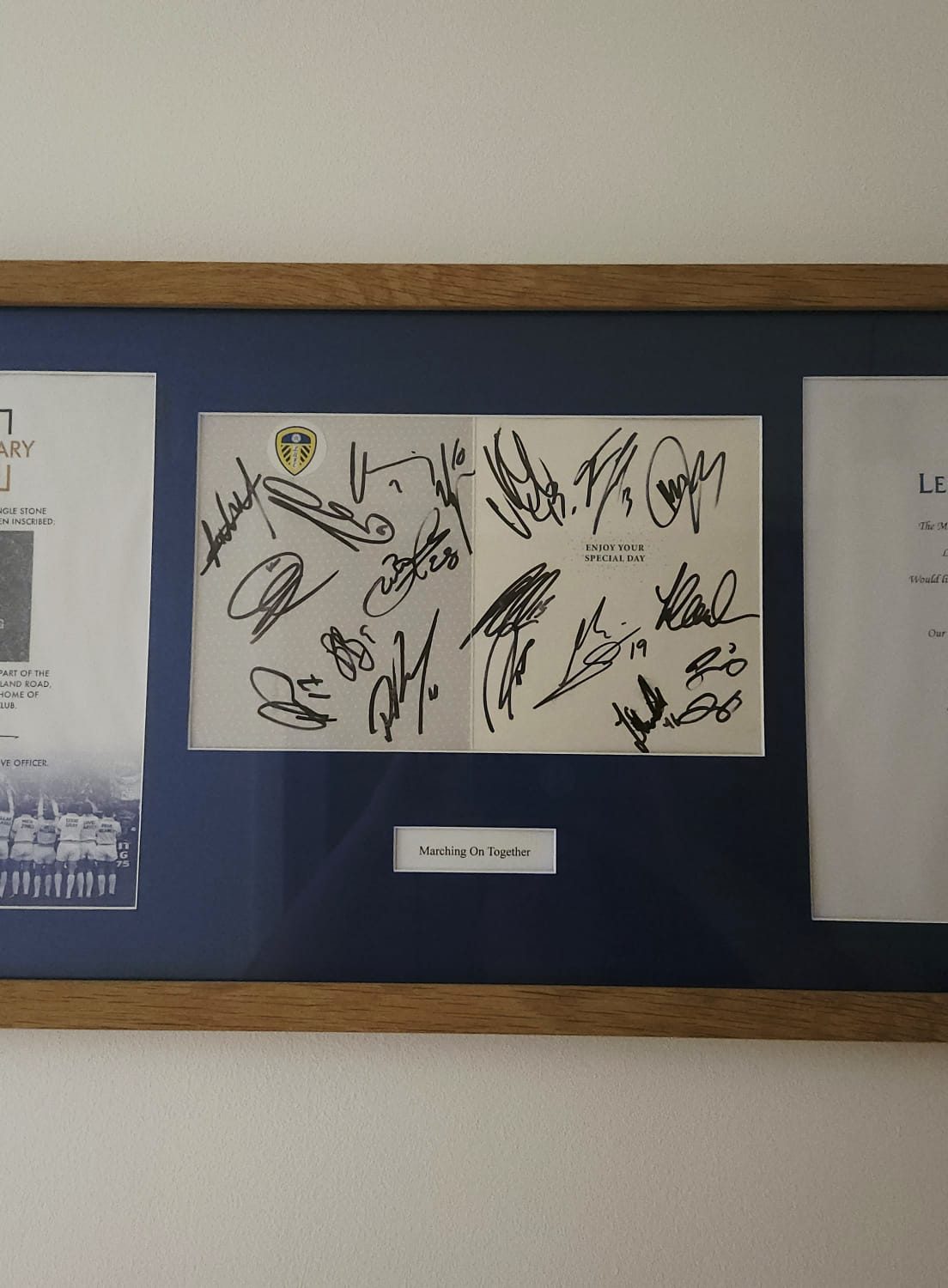 We subsequently had them professionally framed, alongside the certificate for his inscribed stone at Centenary Square Elland Road. Thank you so much for doing this for him Stix he/ we were all blown away!!